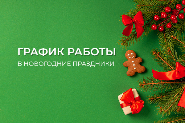 Следуют общему графику: • 31.12, 03-06.01, 08-11.01 — доставка по графику выходного дня. • Выходные (доставки нет): 01.01, 02.01, 07.01. |
