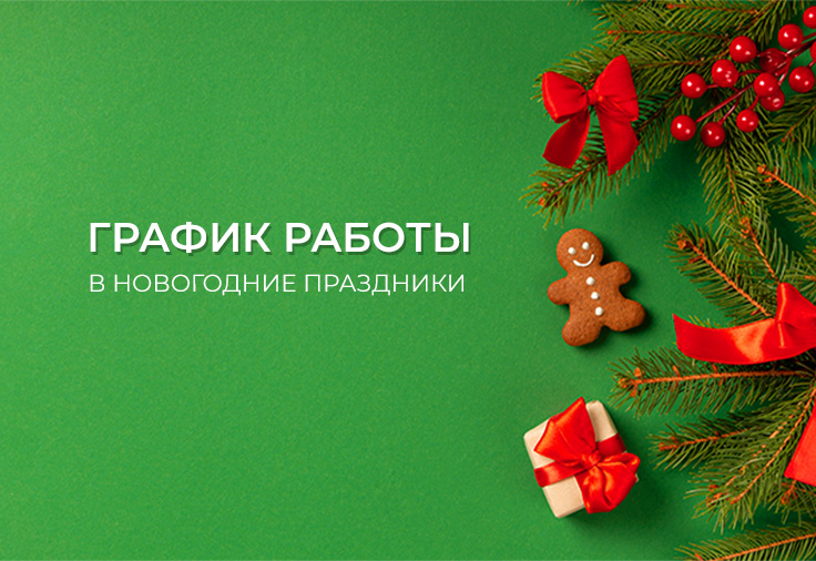 Следуют общему графику: • 31.12, 03-06.01, 08-11.01 — доставка по графику выходного дня. • Выходные (доставки нет): 01.01, 02.01, 07.01. |