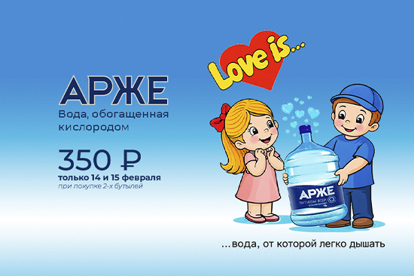 Только 14 и 15 февраля у вас есть уникальная возможность приобрести воду, обогащенную кислородом, по особой цене — всего 350 ₽ за единицу при покупке двух бутылей.