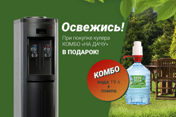При покупке кулера для воды на нашем сайте vasha-voda.ru, в мобильном приложении или по телефону +7 4742 35-61-16 в подарок набор для дачи: Механическая помпа и бутыль Ваша Вода 19 литров в ПЭТ