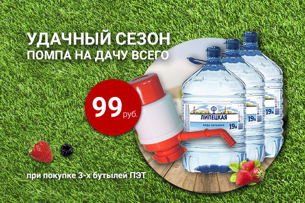 Добавьте в корзину 3 бутыли воды "Липецкая" 19 литров ПЭТ и любую механическую помпу, скидка применится автоматически.