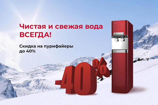 Не упустите шанс приобрести пурифайеры с выгодой до 40%! Обеспечьте себя и своих близких чистой и свежей водой.