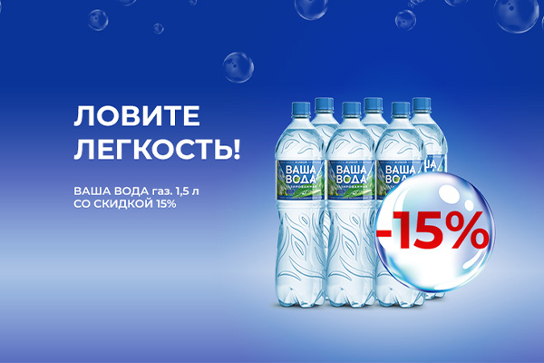 Заботитесь о балансе даже в праздники? Мы поддержим ваше решение! С 2 по 31 декабря дарим 15% скидки на чистую газированную воду «Ваша Вода» 1,5 л.